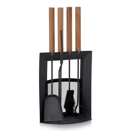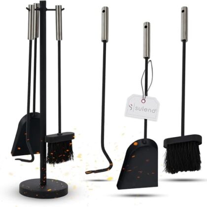SULENO Kaminbesteck DUBLIN 4-teilig Kamingarnitur mit Ascheschaufel Besen Schürhaken, Kaminset & Halter, Ofenbesteck schwarz